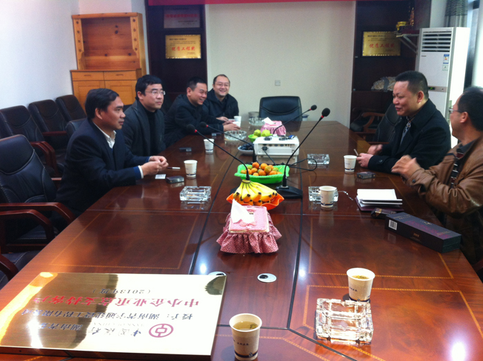 公司董事長(zhǎng)謝志方向中國(guó)銀行株洲市支行譚文明副行長(zhǎng)匯報(bào)公司2014年的資金使用計(jì)劃。