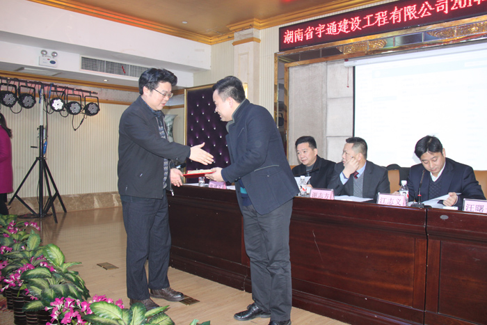 三羊開泰,萬象更新!告別難忘的2014,迎來全新的2015;回首5年奮斗路,展望宇通新前程。2015年2月13日,湖南省宇通建設(shè)工程有限公司2014年度工作總結(jié)暨表彰大會(huì)在株洲市銀城大酒店隆重舉行。大會(huì)由公司行政人事部部長劉春洋主持,公司董事長謝志方、總經(jīng)理江志義、副總經(jīng)理歐壽康、副總經(jīng)理汪曙光、副總經(jīng)理郭建文以及公司全體員工參加了會(huì)議。